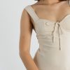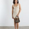 A fitted mini dress with a soft cupped bust and a side zip closure. Lined.