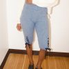 Fuzzy knit capri pants featuring decorative ties at the side hems.