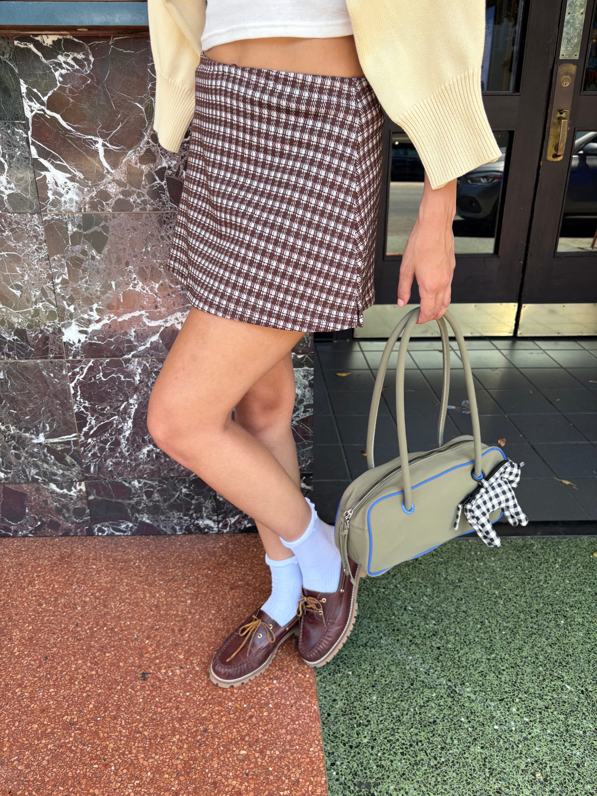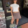 From the LSG Fall Collection, the Darcy Skort is an ultra mini skirt with a built in short and elastic waist band. Made in a soft stretch woven plaid fabric. Runs true to size.
