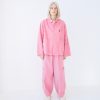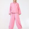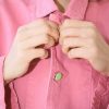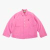 Boxy chore jacket made in a 100% cotton, pink dyed canvas. Designed and manufactured in Los Angeles and features neon green buttons and plenty of pockets for versatile wearing.