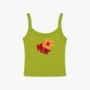 Spaghetti strap tank top in soft, cotton t-shirt fabric featured in a solid green with a fun hibiscus graphic.