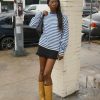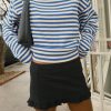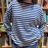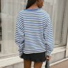 100% organic cotton crewneck sweater with blue stripes for a vintage feel.