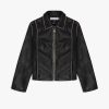 Faux leather fitted jacket with a zip closure and side-seam pockets. Featured in a vintage-inspired distressed fabric.