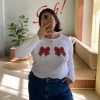 🎀Gah! The Dana is such a closet staple. A fitted cotton long sleeve tee with a cropped body and the loveliest ribbon bow print. Made from deadstock rib fabric sourced locally in LA.
